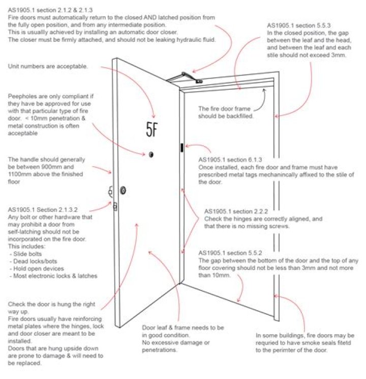 1.15. 2 of the 2012 Life Safety Code says you must maintain the fire rated door assemblies in accordance with NFPA 80. Any clearance under the bottom of the door (while it is in the closed position) that exceeds ¾ inch will be considered non-compliant.Can you sand fire doors?