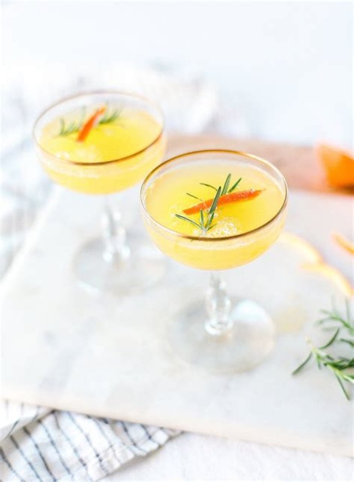 Snooze Sparkling, Orange Juice & Pomegranate Liqueur.