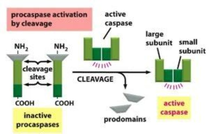 Caspase-3 is a cysteine–aspartic acid protease that cleaves cellular targets and executes cell death. Our current understanding is caspase-3 is activated by the cleavage of the interdomain linker and then subsequent cleavage of the N-terminal prodomain.