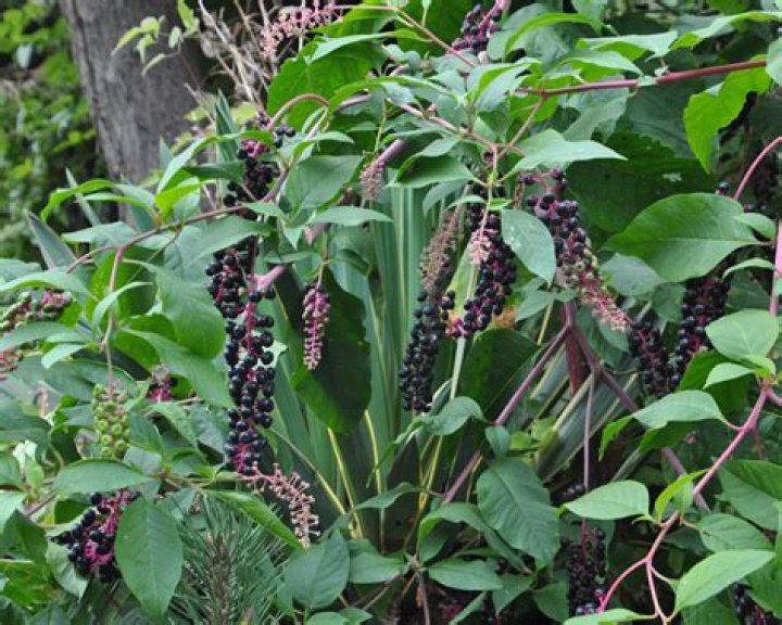 Pokeweed might look decorative with large, smooth leaves, dark purple berries and green, red or purple stems, but it is an invasive plant. Pokeweed is native to the southeastern United States, but is increasingly popping up around the Pacific Northwest.