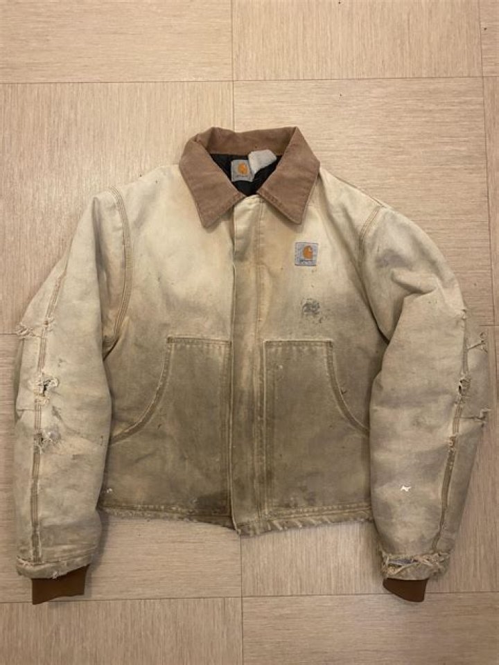 It’s all fades. This Carhartt Duck Traditional Jacket may look like a simple white jacket on the surface. But take a closer look and you’ll see the original color hidden in the crevices. … Christopher Swink of Missouri wore this as his painter’s jacket for its first 5 years.
