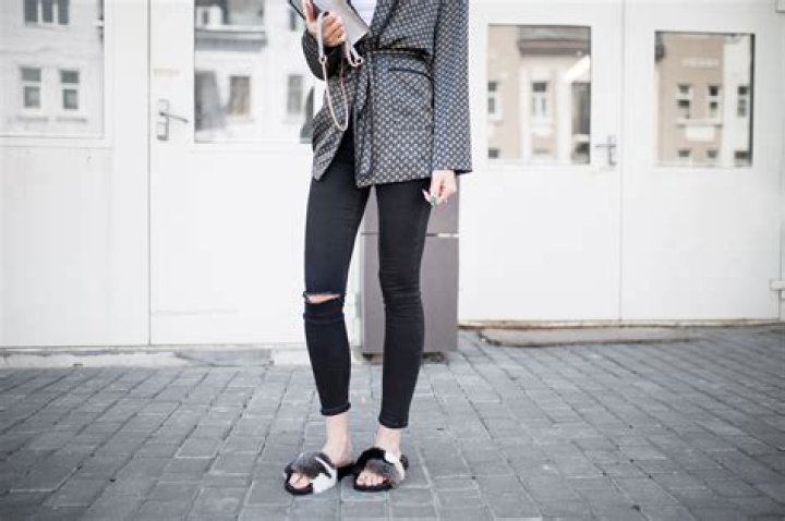 What do you wear with a black fluffy slide?