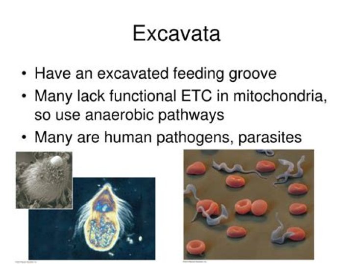 Excavata are a supergroup of protists that are defined by an asymmetrical appearance with a feeding groove that is “excavated” from one side; it includes various types of organisms which are parasitic, photosynthetic and heterotrophic predators.