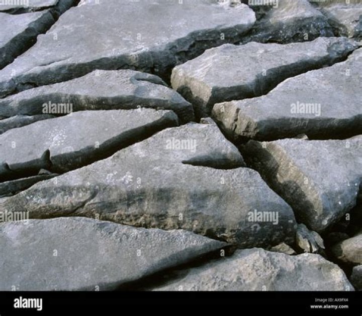 Limestone pavements Rainwater is a weak carbonic acid which reacts with the limestone dissolving the stone, enlarging joints and bedding planes. … This leaves exposed blocks of limestone called clints and the resulting pattern of blocky rock is called a limestone pavement, eg Malham Cove.
