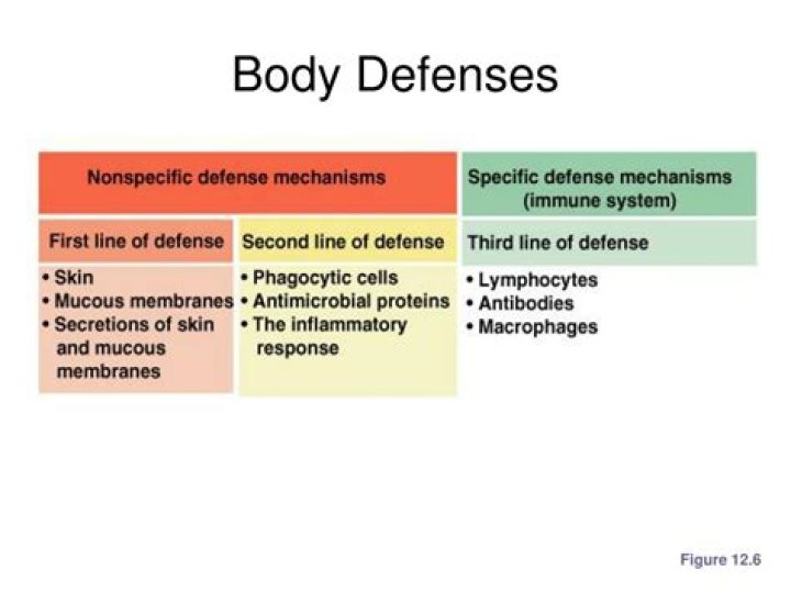The first line of defence (or outside defence system) includes physical and chemical barriers that are always ready and prepared to defend the body from infection. These include your skin, tears, mucus, cilia, stomach acid, urine flow, ‘friendly’ bacteria and white blood cells called neutrophils.