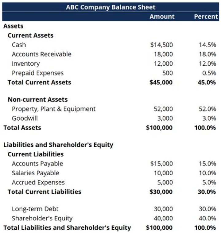 Definition: A Common Size Balance Sheet is a financial statement that presents the assets, liabilities, and equity of a business with each line item shown as a percentage of the total category.