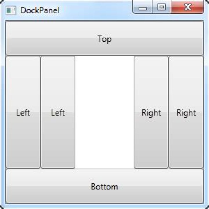 The dock side of an element is defined by the attached property DockPanel. Dock . To dock an element to the center of the panel, it must be the last child of the panel and the LastChildFill property must be set to true.