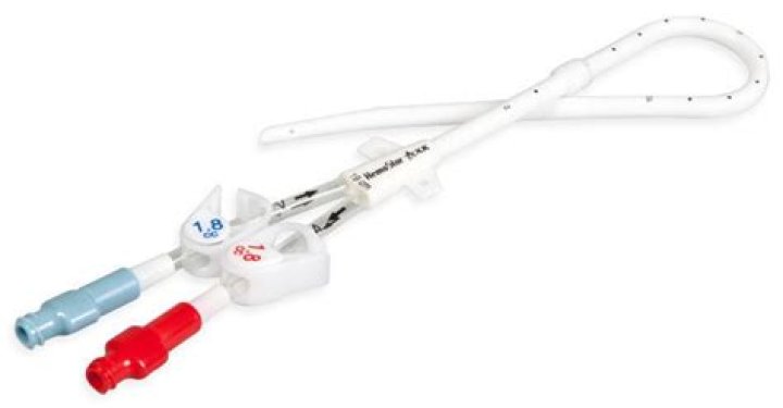 Vas Cath for Dialysis is a Large Bore Central Venous Catheter Line placed in the Jugular Vein or Femoral Vein and used for Dialysis to address Kidney Disease and Renal Failure. Vas Cath is a temporary dialysis catheter which can typically be used for up to 30 to 45 days.