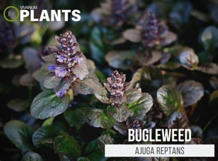 What does Bugleweed look like?It produces shiny, dark green leaves and beautiful flower spikes producing blue, violet, or purple flowers in mid- to late-spring that can reach 8 to 10 inches tall, although the flower spikes on some cultivars are shorter. Several cultivars offer variegated foliage colors and patterns.