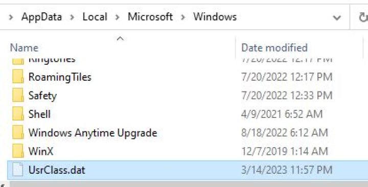 The USRCLASS. DAT file is typically located along a path like C:\Documents and Settings< user_name >\Local Settings\Application Data\Microsoft\Windows\UsrClass. dat or C:\Users< user_name >\AppData\Local\Microsoft\Windows. In Windows Explorer, right-click the NTUSER.