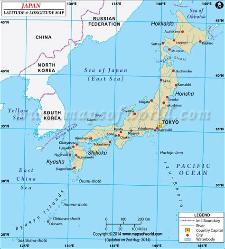 Where is Japan on the equator?