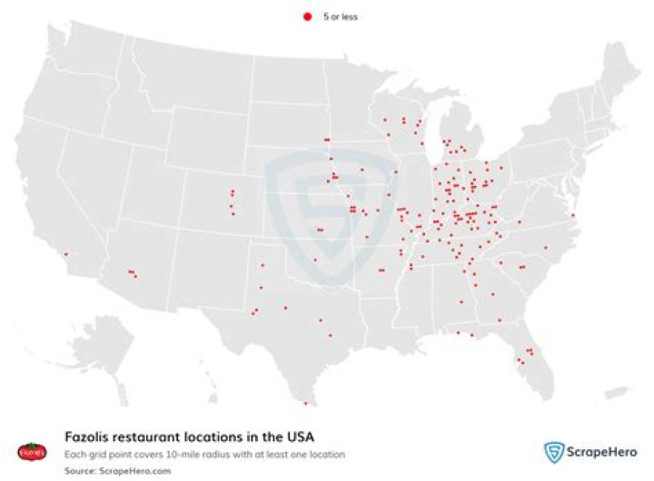 There are over 210 Fazoli’s restaurants located in 27 states across the US with most locations in the Midwest and Southeast.