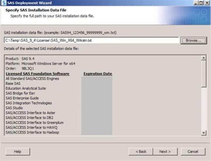 The sid file contains installation and product authorization information. It is used by the deployment wizard. The name of the file is something like sas94_xxxxxx_yyyyyyyy_zzz.How do I update my SAS with a new license?