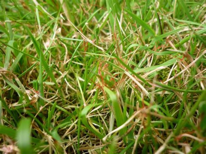 - Thin patches of frayed, distorted, or discolored grass blades.