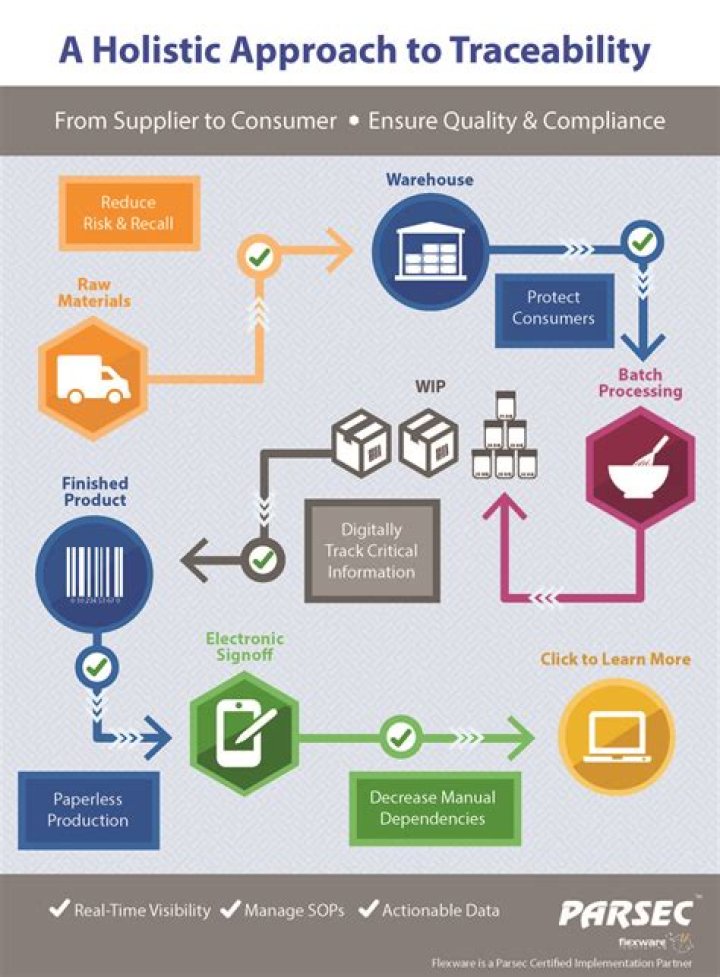 - Trace any defective or contaminated products back to their batch.