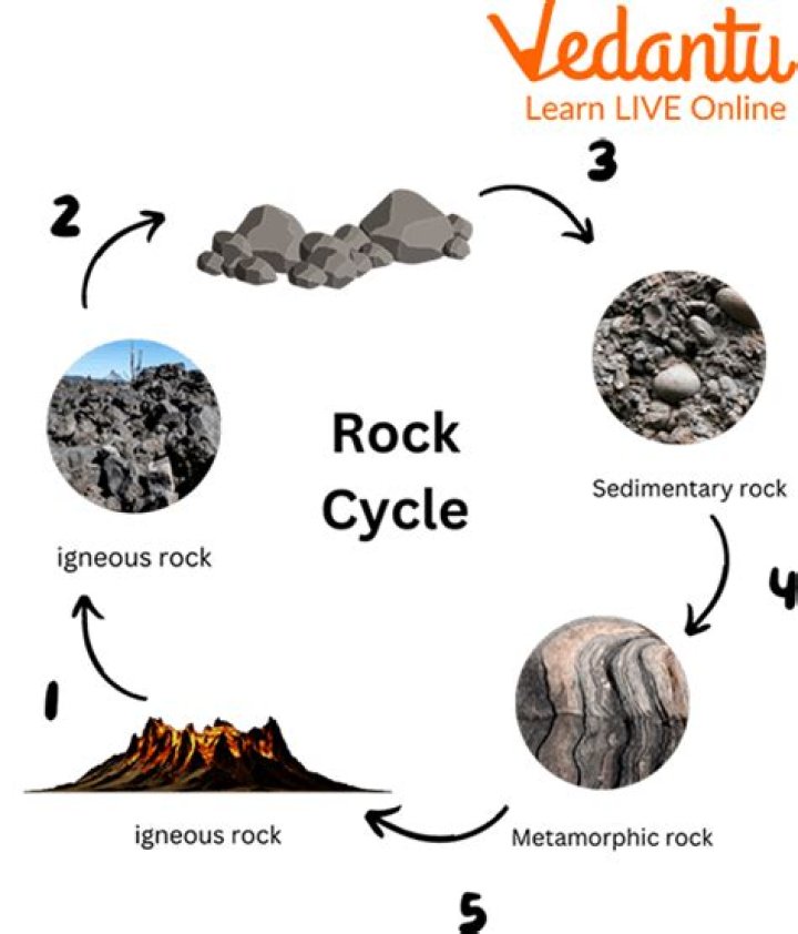 The rock cycle is a process in which rocks are continuously transformed between the three rock types igneous, sedimentary and metamorphic. … If the sediments are buried under further layers of sediment, they can become lithified to produce a sedimentary rock. Magma is produced when rocks are melted.